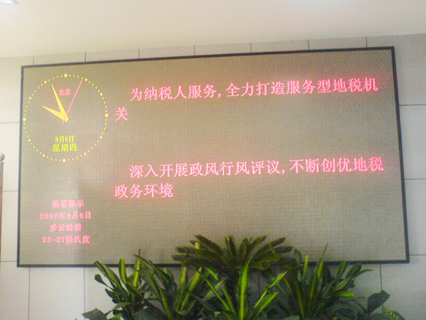 1.采用3.75室內單、雙色顯示屏,顯示文字清晰,精度高,無論遠、近距離觀看都能保證的文字的不失真。